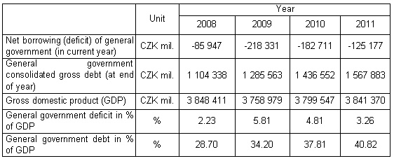 The data on the government deficit a debt for the Czech Republic in this table have not been revised in comparison with preliminary data published 1 October April 2012.