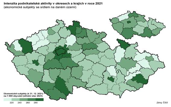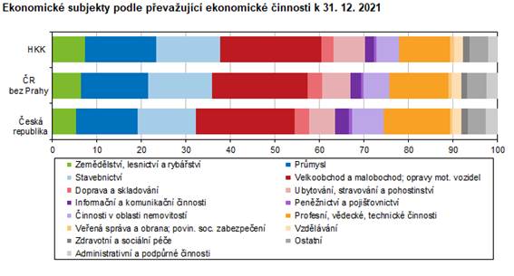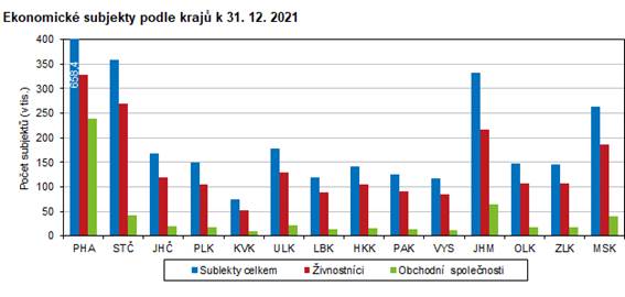 Ekonomické subjekty v Královéhradeckém kraji k 31. prosinci 2021