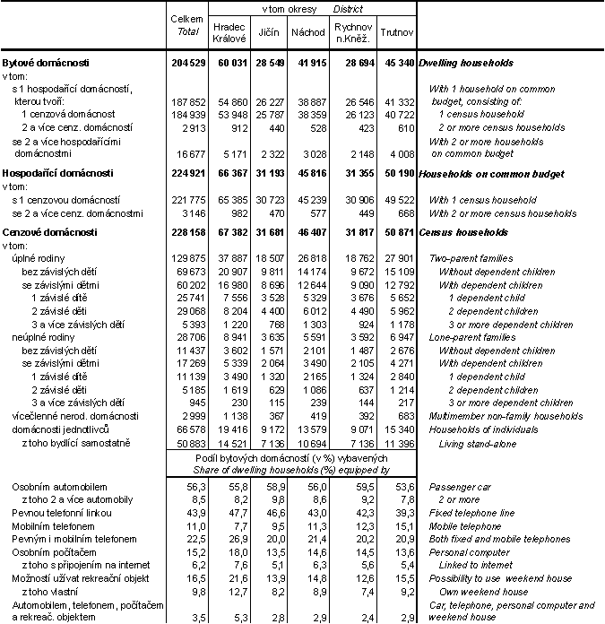 Hlavní charakteristiky domácností podle okresů