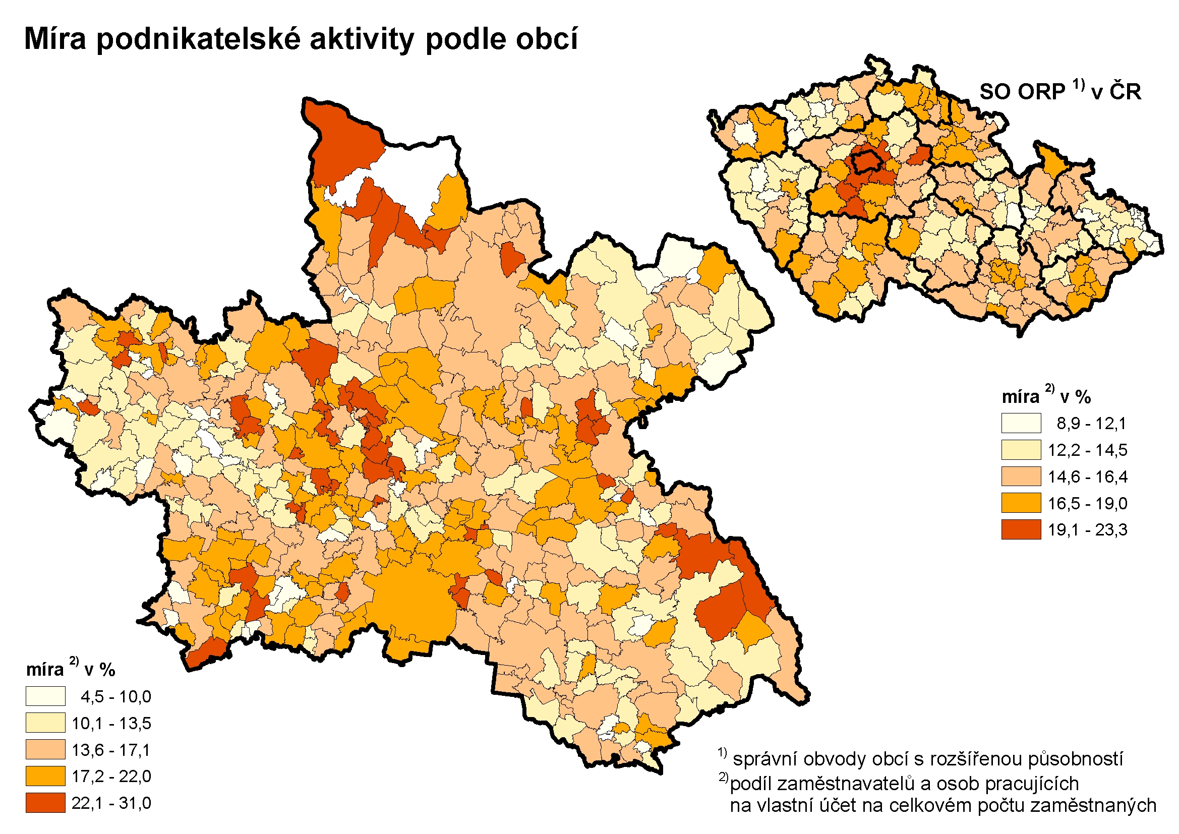 Podíl zaměstnaných na celkovém počtu obyvatel ve věku 15 a více let podle obcí
