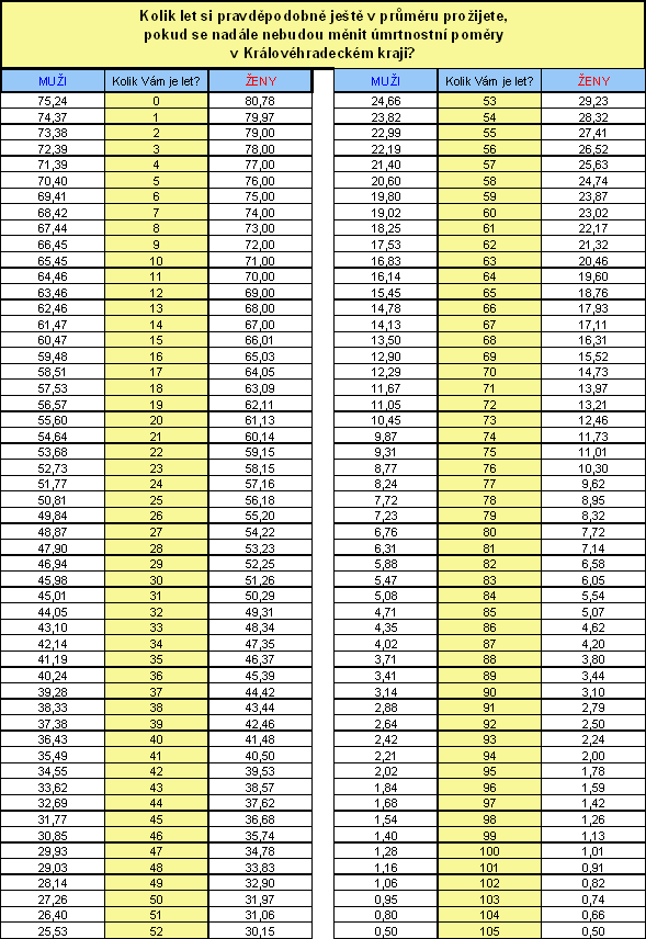 Kolika let byste se měli dožít