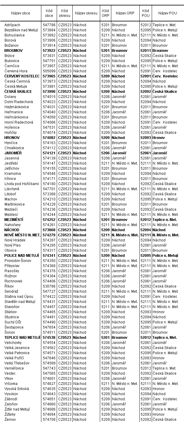 Abecední seznam obcí a jejich územní příslušnost v okrese Náchod k 1. 1. 2005*)