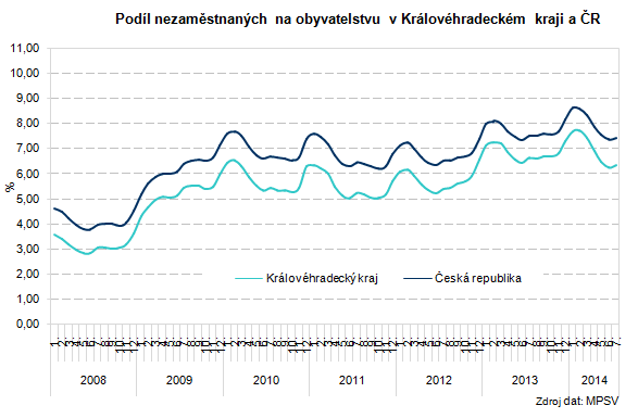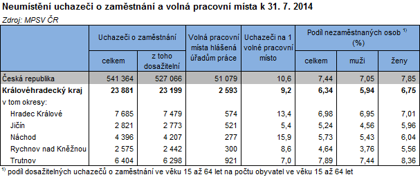 Nezaměstnanost v Královéhradeckém kraji k 31. červenci 2014