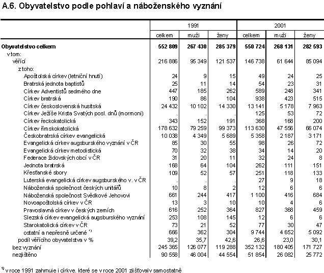 Obyvatelstvo podle pohlaví a náboženského vyznání