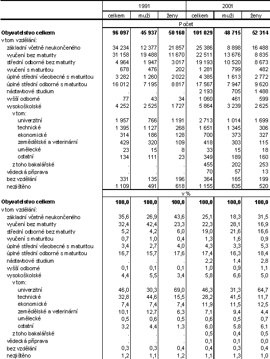 Obyvatelstvo ve věku 15 a více let podle pohlaví a nejvyššího ukončeného vzdělání