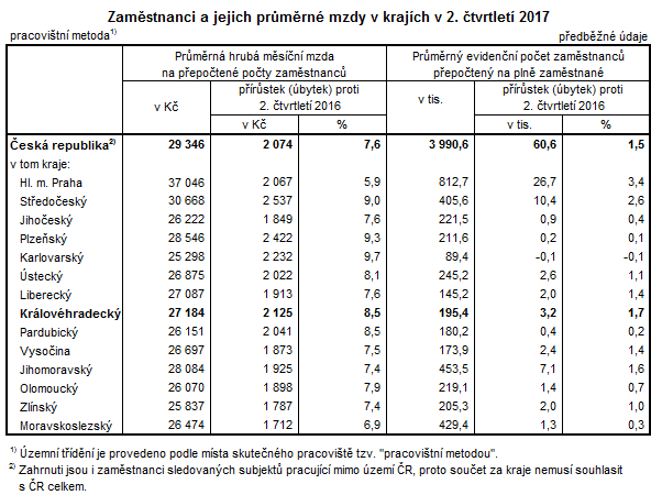 Další informace naleznete v „Rychlé informaci“ Průměrné mzdy – 2. čtvrtletí 2017 a v analýze Vývoj mezd zaměstnanců - 2. čtvrtletí 2017.