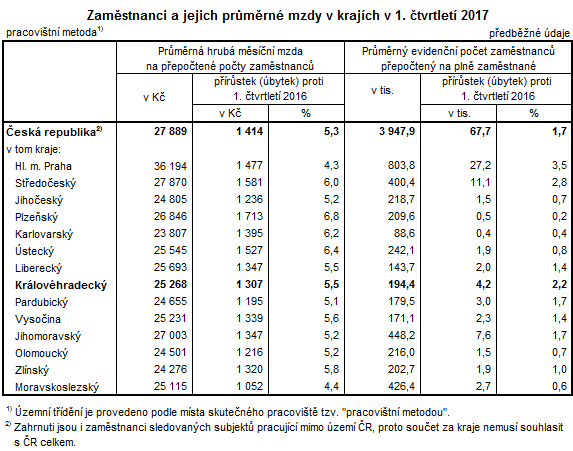 Další informace naleznete v „Rychlé informaci“ Průměrné mzdy – 1. čtvrtletí 2017.