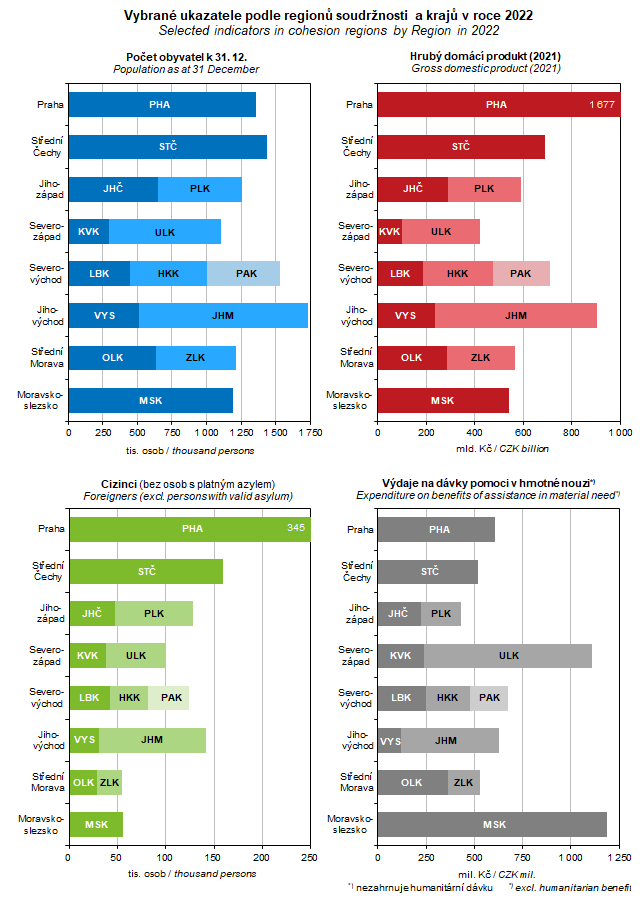Vybrané ukazatele podle regionů soudržnosti NUTS2 v roce 2022