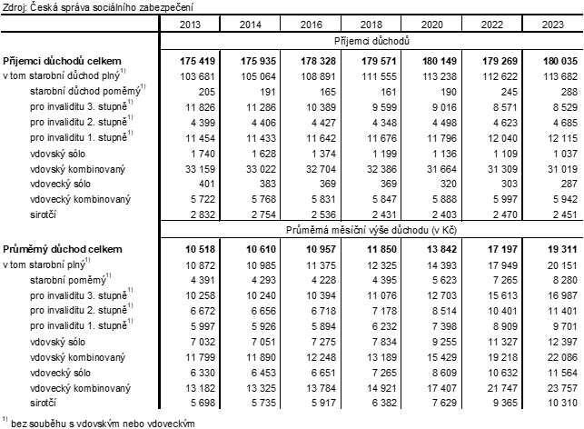 Důchody a příjemci důchodů v Jihočeském kraji v roce 2023