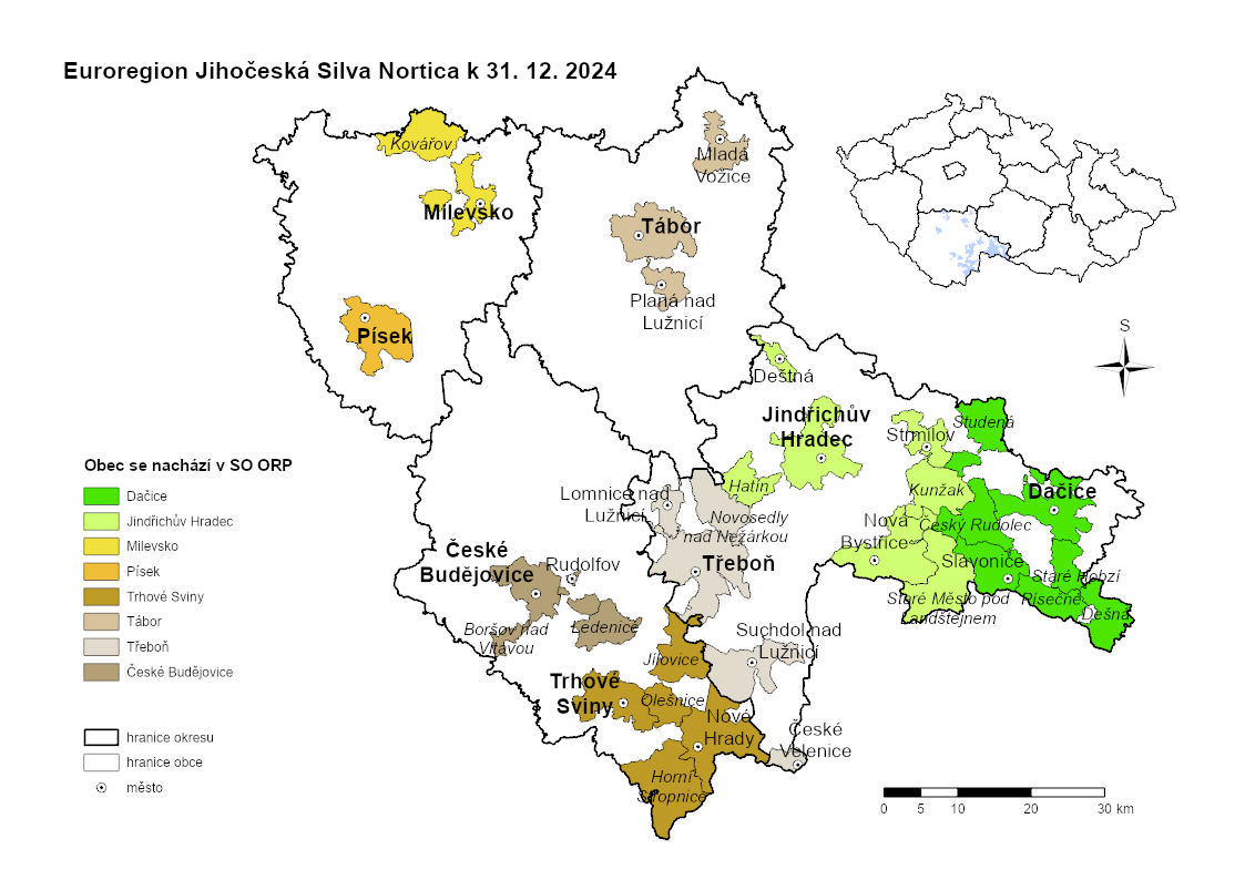 Česká část Euregia Silva Nortica má rozlohu 6 035 km², 444,5 tis. obyvatel a je v něm zapojeno 34 obcí jihočeského kraje. Území je součástí Českého masivu, s výrazným zastoupením Českobudějovické a Třeboňské pánve. Oblast má převážně zemědělský a rekreační charakter s tradičním rybníkářstvím. V Třeboňské rybniční soustavě je 70 km² vodních ploch.
