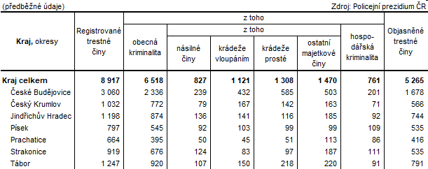 Tab. 2 Kriminalita v Jihočeském kraji a jeho okresech v roce 2023