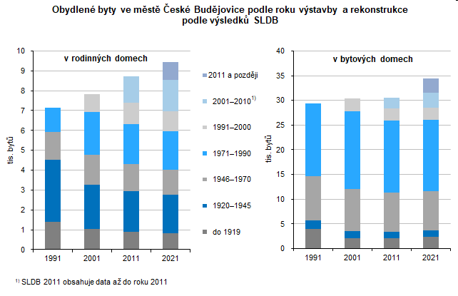 Graf 5-2. Obydlené byty podle roku výstavby a rekonstrukce (podle SLDB)