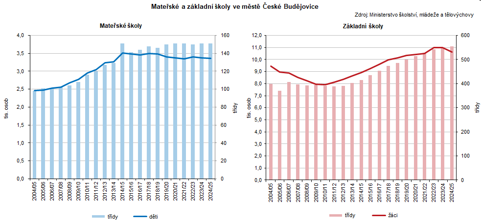Graf 9-1. Mateřské a základní školy od školního roku 2003/04