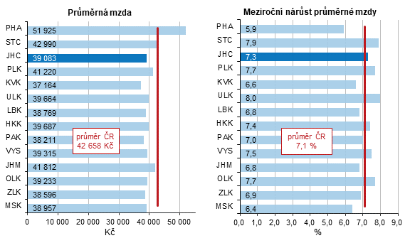 Mzda vzrostla ve všech krajích ČR, Jihočeský kraj se v tomto období umístil v procentním vyjádření na sedmém místě, v absolutních hodnotách na osmém místě.
