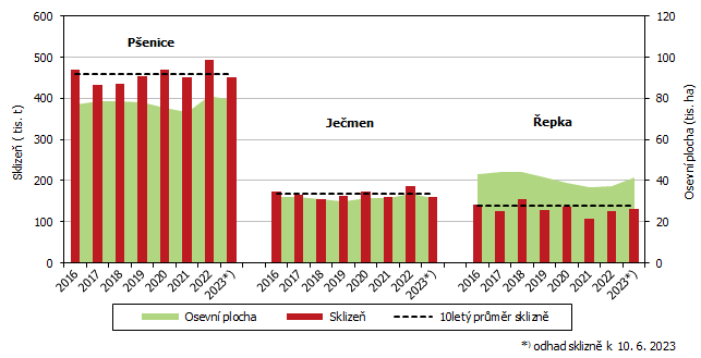 a odhad sklizně k 10. 6. 2023 v Jihočeském kraji