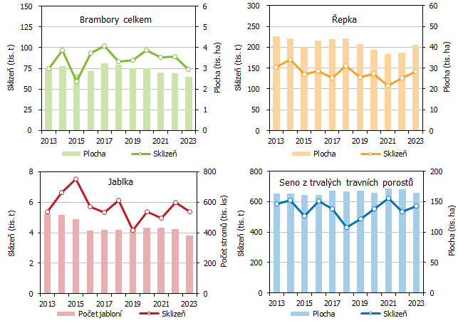 V roce 2023 byla sklizeň většiny plodin oproti předchozímu roku nižší