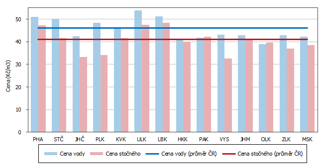 Přestože cena stočného (bez DPH) v Jihočeském kraji meziročně vzrostla o 1,0 Kč/m3 na hodnotu 33,2 Kč/m3, byla druhá nejnižší v Česku. Rozdíl proti republikovému průměru činil 7,8 Kč/m3. Také cena stočného ve všech krajích meziročně vzrostla. Nejdražší stočné vykázal Liberecký kraj (48,4 Kč/m3), zatímco obyvatelé Kraje Vysočina platili za odpadní vody pouze (32,6 Kč/m3). Také zde rozdíl mezi nejvyšší a nejnižší cenou stočného dosáhl 15,1 Kč/m3.