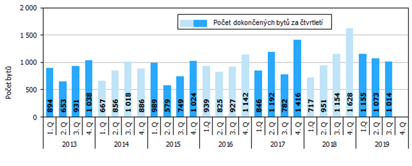 Za prvních 9 měsíců letošního roku bylo v Jihomoravském kraji dokončeno 3 242 bytů, což je o 424 bytů více než ve stejném období roku 2018. Více než polovina z nich jsou v okresech Brno-město a Brno-venkov. Ve sledovaném období byla zahájena výstavba 3 606 nových bytů, převážně v rodinných domech.