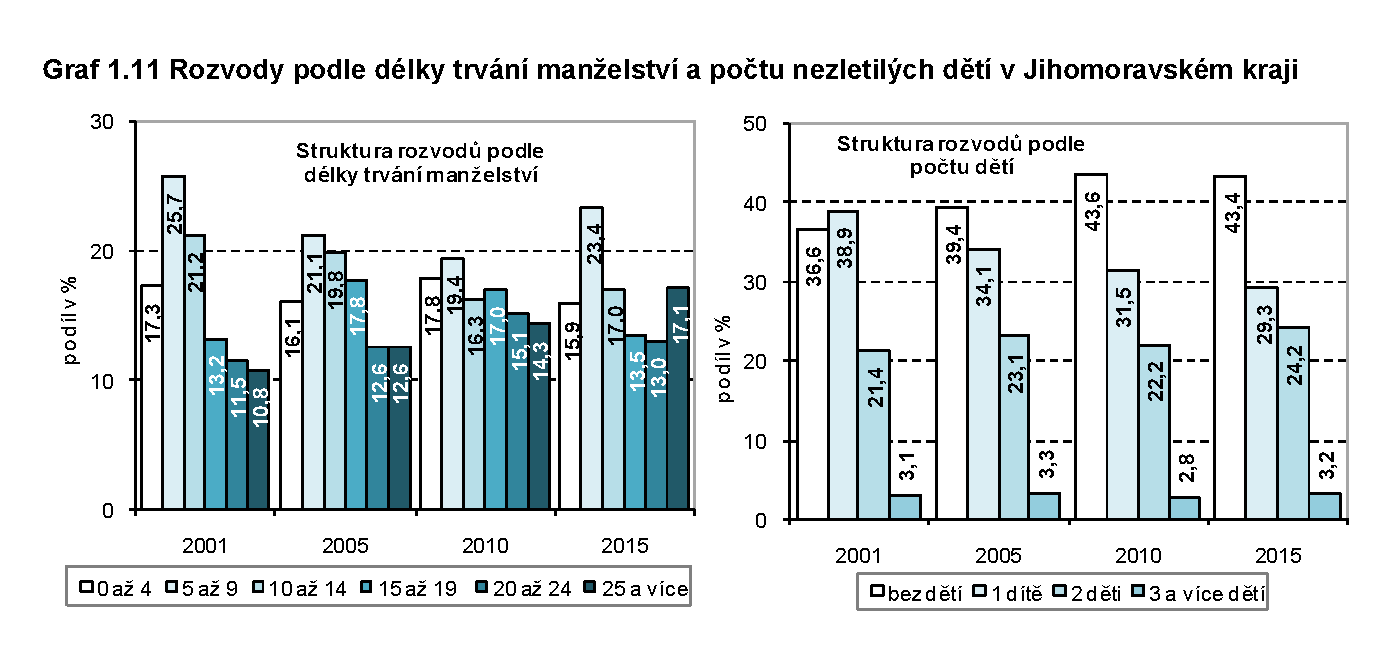 Rozvody podle délky trvání manželství a počtu nezletilých dětí