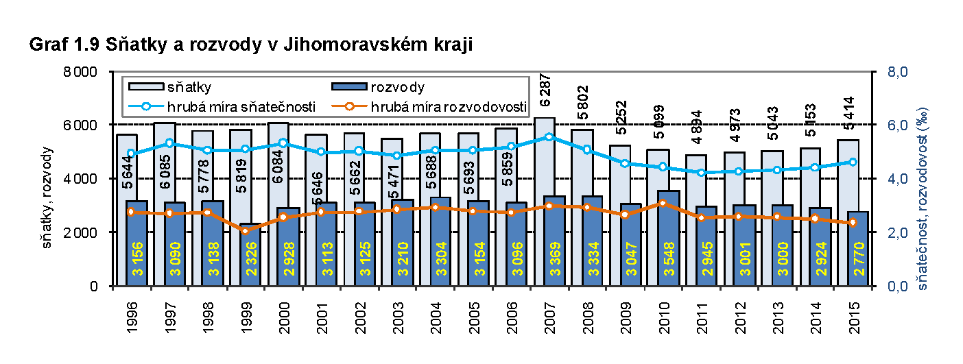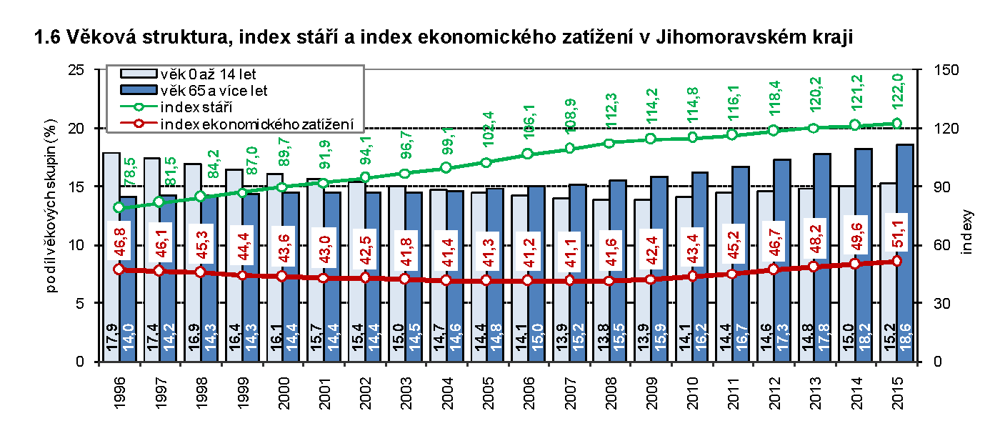 Grafy z analýzy Základní tendence vývoje Jihomoravského kraje 2015