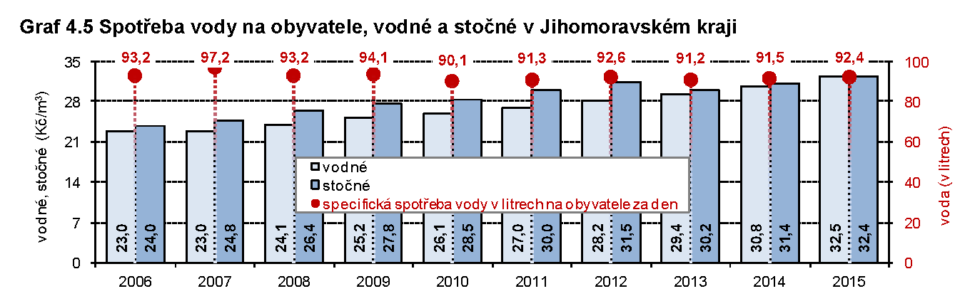 Spotřeba vody na obyvatele, vodné a stočné
