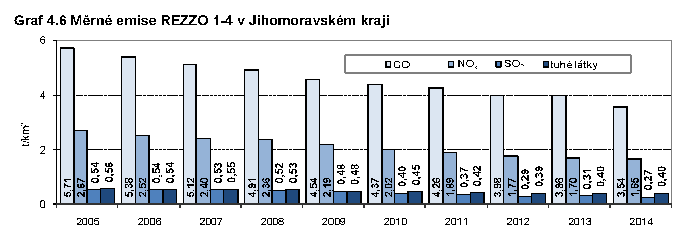 Měrné emise REZZO 1-4