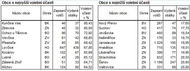 Odzkoušený systém pořízení a zpracování dat za okrsky s okamžitým předáním výsledků do centra (on-line systém) fungoval bezproblémově a zvládl i nápor přenosu dat v období, kdy se kumulovalo zpracování z mnoha okrsků najednou. Průběžné výsledky zpracování voleb za jednotlivé okrsky byly okamžitě k dispozici veřejnosti na volebním serveru www.volby.cz.
