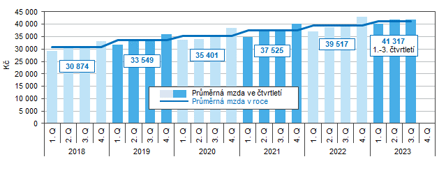 Průměrná mzda v Jihomoravském kraji v 1. až 3. čtvrtletí 2023