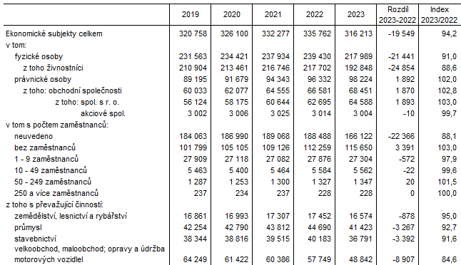 Registr ekonomických subjektů Jihomoravského kraje k 31. 12. 2023