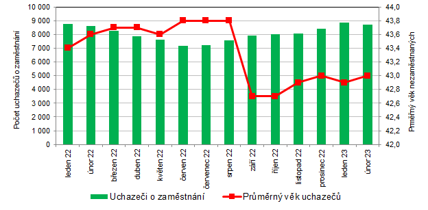 V Karlovarském kraji bylo k 28. 2. 2023 evidováno na úřadech práce celkem 8 714 uchazečů o zaměstnání, z toho 7 909, tj. 90,8 % dosažitelných. Počet uchazečů se tak meziměsíčně snížil o 123 tj. o 1,4 %. Více než polovinu z celkového počtu uchazečů tvořily ženy (54,3 %, tj. 4 735). Absolventů a mladistvých uchazečů o zaměstnání bylo evidováno na konci sledovaného měsíce celkem 402 (4,6 % všech uchazečů) a mezi uchazeči bylo také 904 osob se zdravotním postižením.
