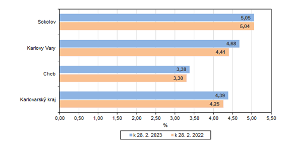 Nezaměstnanost v Karlovarském kraji k 28. 2. 2023 podle MPSV