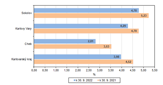 Nezaměstnanost v Karlovarském kraji k 30. 9. 2022 podle MPSV