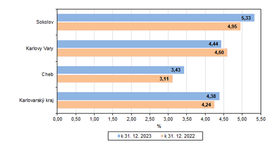 Nezaměstnanost v Karlovarském kraji k 31. 12. 2023 podle MPSV