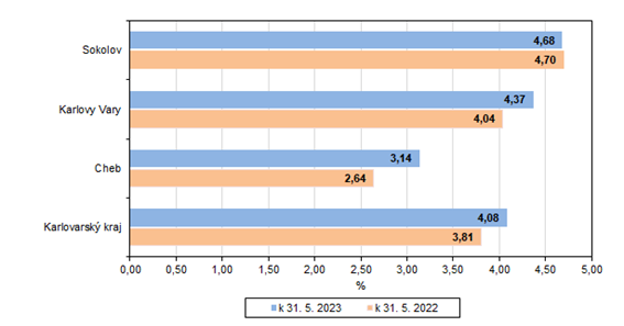 Nezaměstnanost v Karlovarském kraji k 31. 5. 2023 podle MPSV