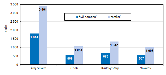 Počet živě narozených a zemřelých v Karlovarském kraji a jeho okresech