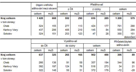 Přistěhovalí a vystěhovalí v Karlovarském kraji a jeho okresech v 1. čtvrtletí 2022 (předběžné údaje)