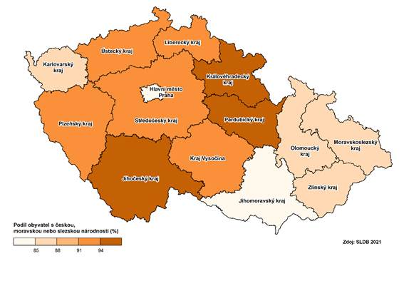 Podíl obyvatel dle národnosti v krajích