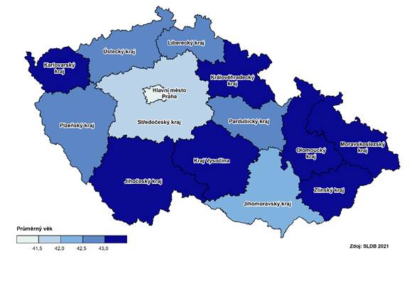 Průměrný věk obyvatel v krajích