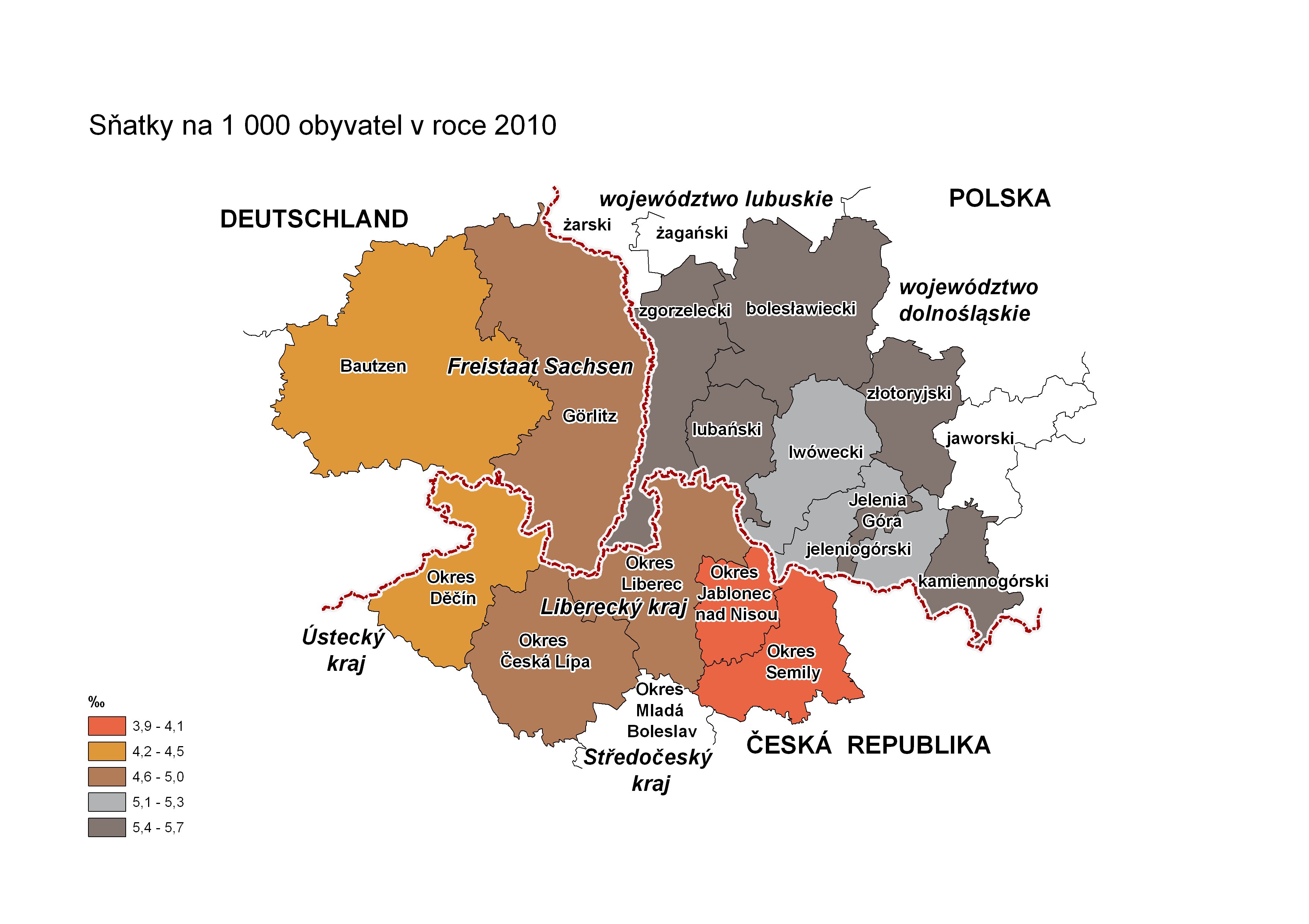 Česká část euroregionu obsahuje údaje za Liberecký kraj a jeho okresy.