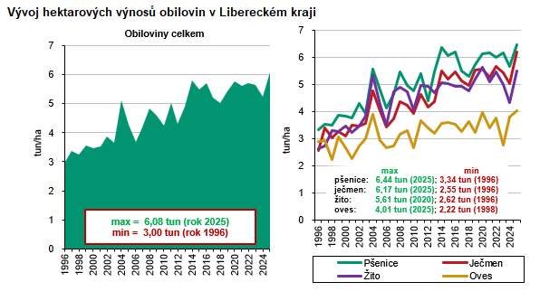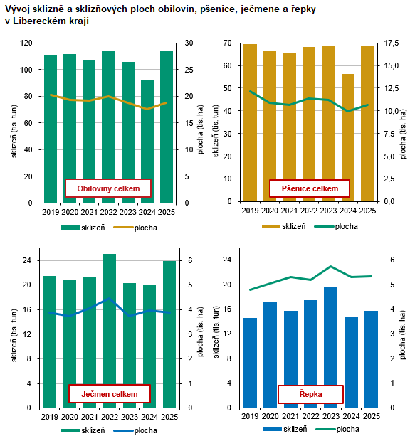 Definitivní údaje o sklizni v Libereckém kraji v roce 2025