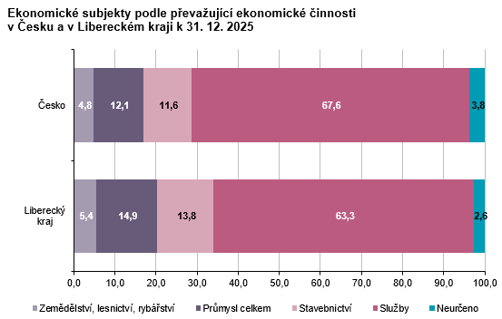 Ekonomické subjekty v Libereckém kraji k 31. 12. 2025