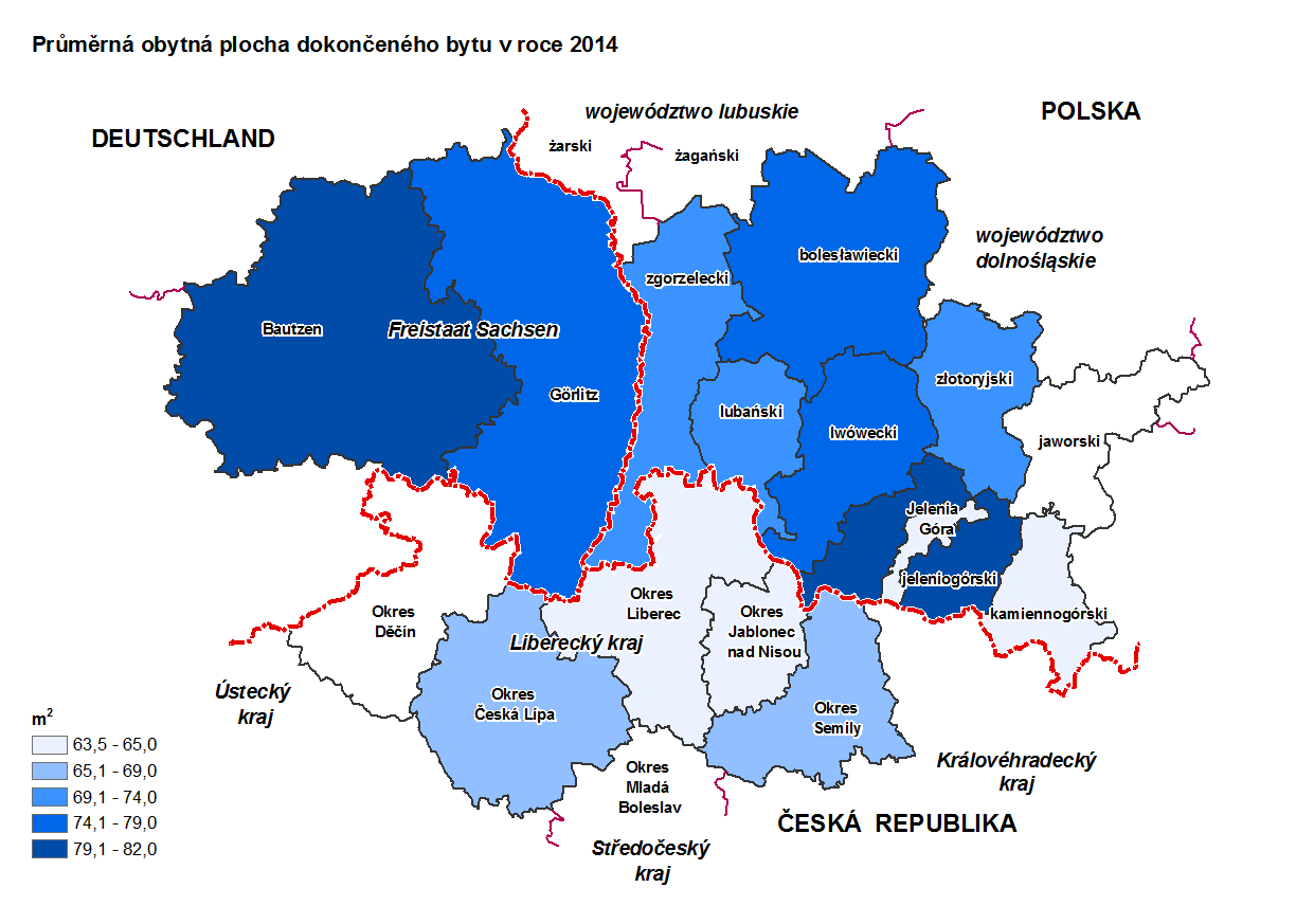 Průměrná obytná plocha dokončeného bytu v roce 2014