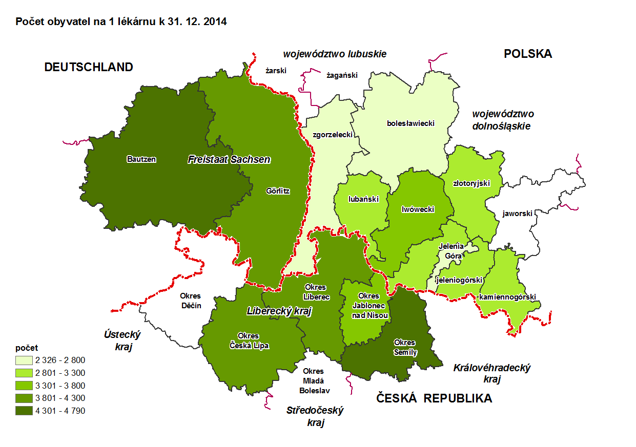 Počet obyvatel na 1 lékárnu k 31. 12. 2014