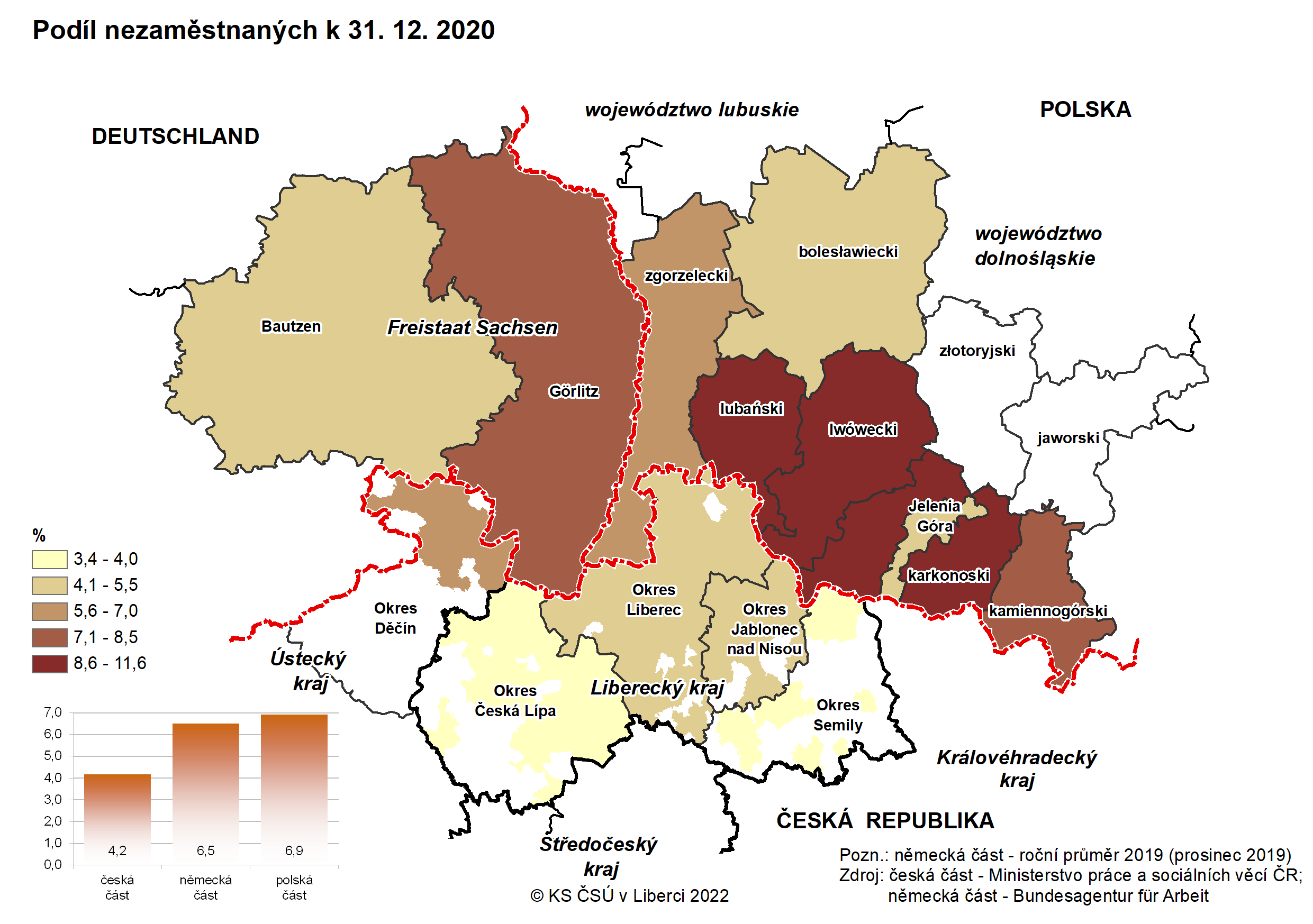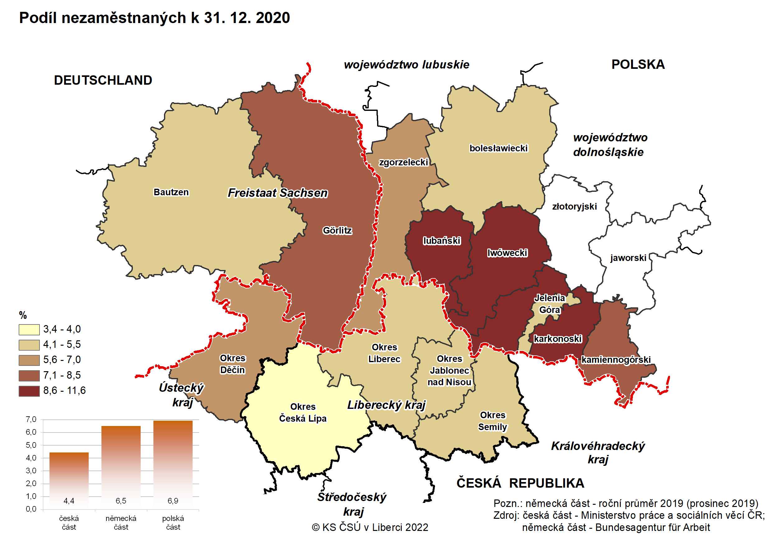 Podíl nezaměstnaných k 31. 12. 2020