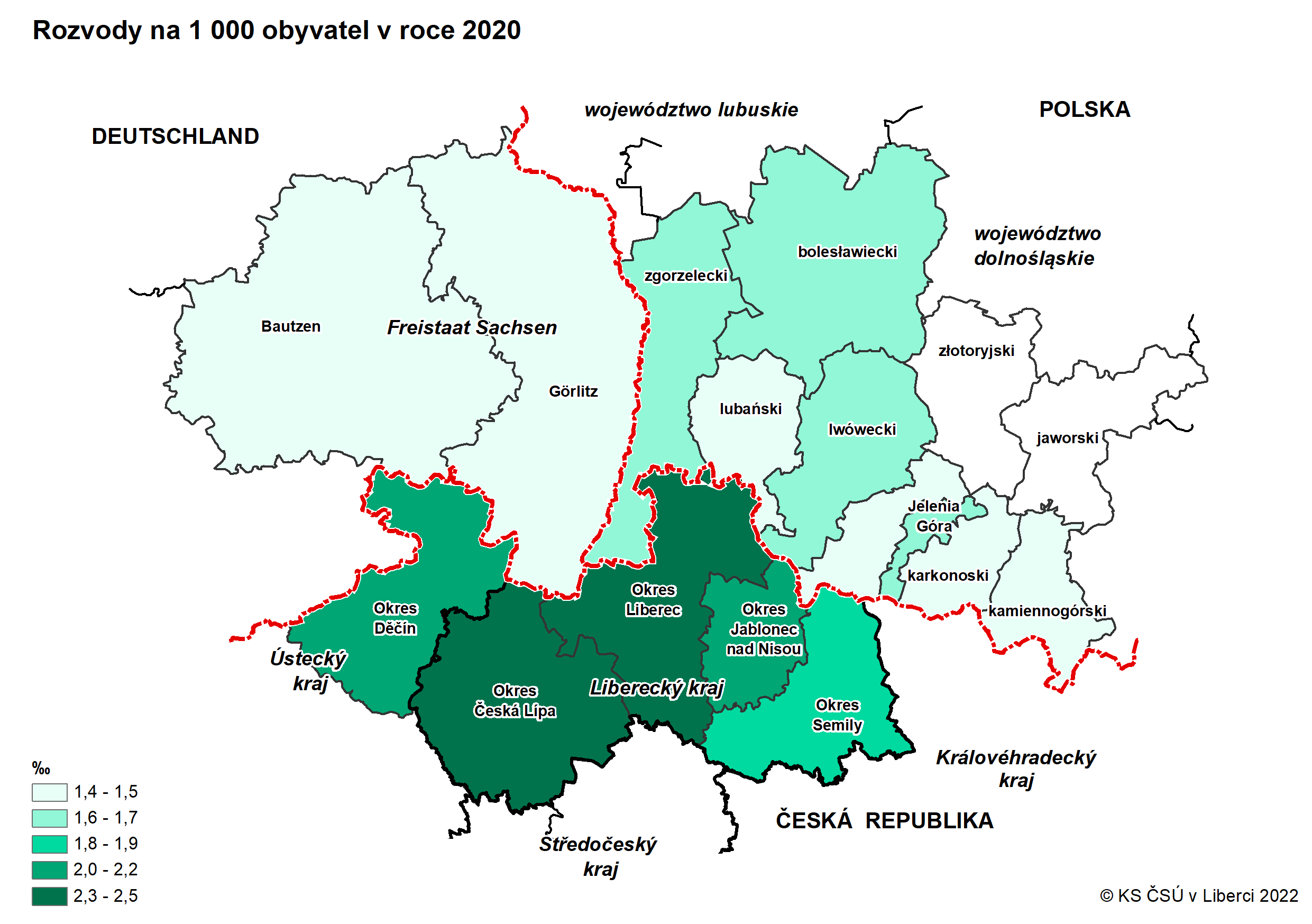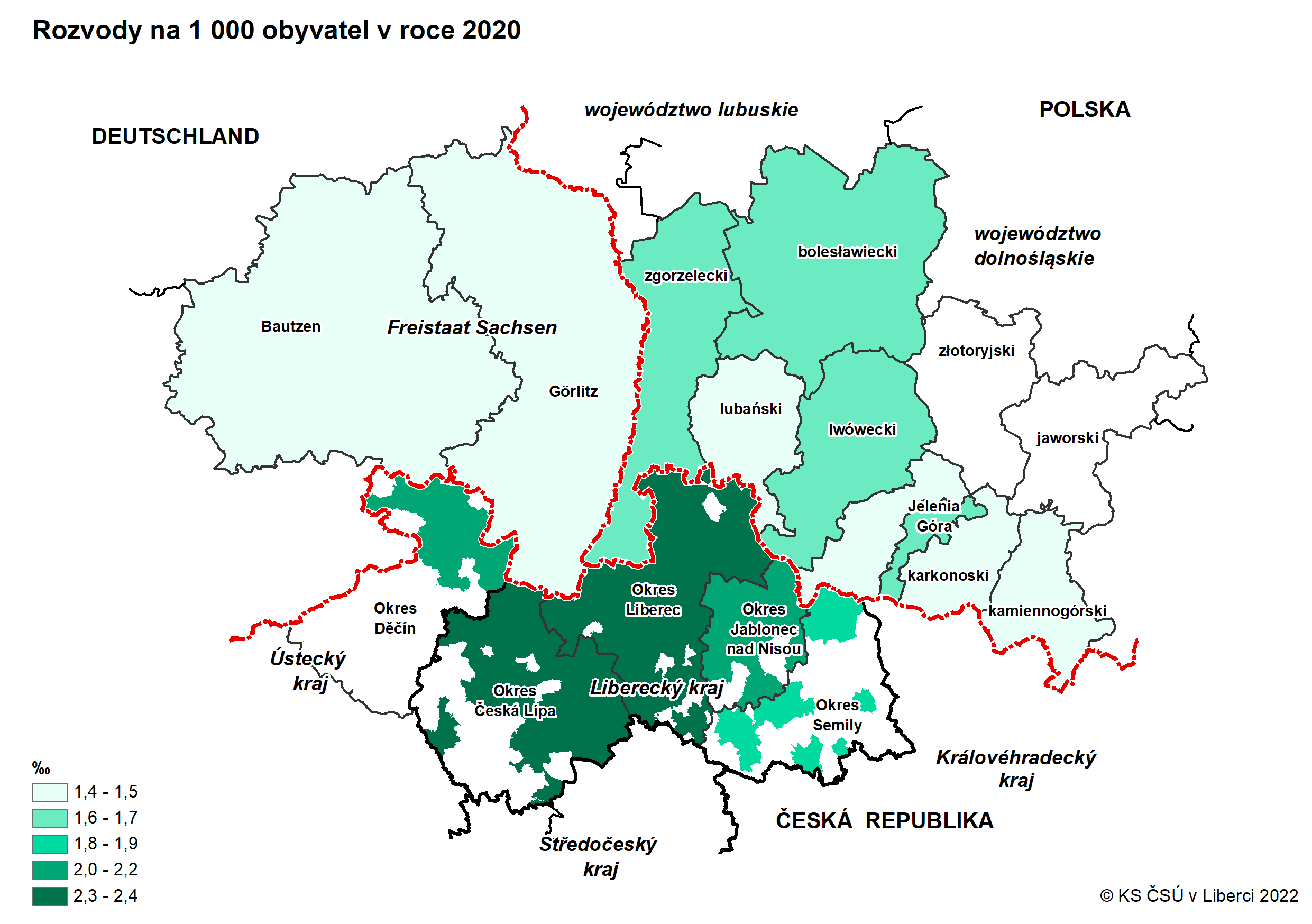Kartogramy z dat za okresy Euroregionu Nisa