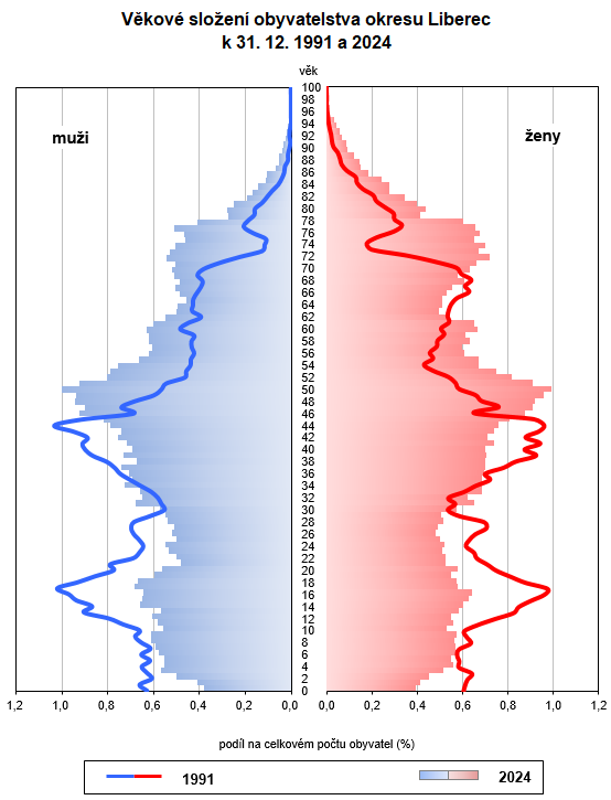 Věkové složení obyvatelstva okresu Liberec