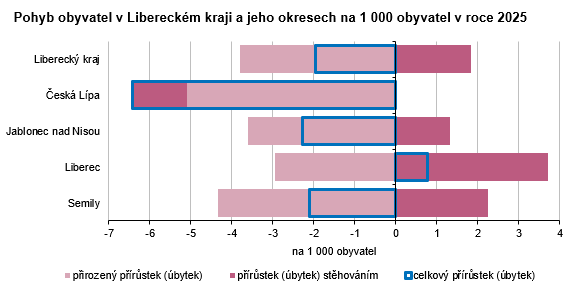 Pohyb obyvatelstva v Libereckém kraji v roce 2025