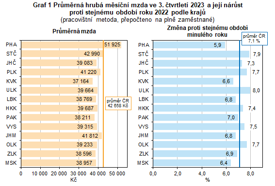 Pozn.: Průměrná hrubá měsíční mzda je podíl mzdových prostředků (vč. příplatků za přesčas, odměn, náhrad mzdy atd.) připadající na jednoho zaměstnance za měsíc. Nevypovídá tedy o výplatě jednoho konkrétního zaměstnance. Strukturální výdělkové statistiky, které mají k dispozici údaje o výdělcích jednotlivých zaměstnanců, uvádějí, že zhruba dvě třetiny zaměstnanců mají mzdu nižší než celostátní průměr. Nelze opomenout, že z hrubé mzdy jsou zaměstnavatelem za zaměstnance ještě odvedeny příslušné částky na zdravotní pojištění, sociální zabezpečení a zálohy na daně z příjmu, zaměstnanci je vyplácena mzda čistá.