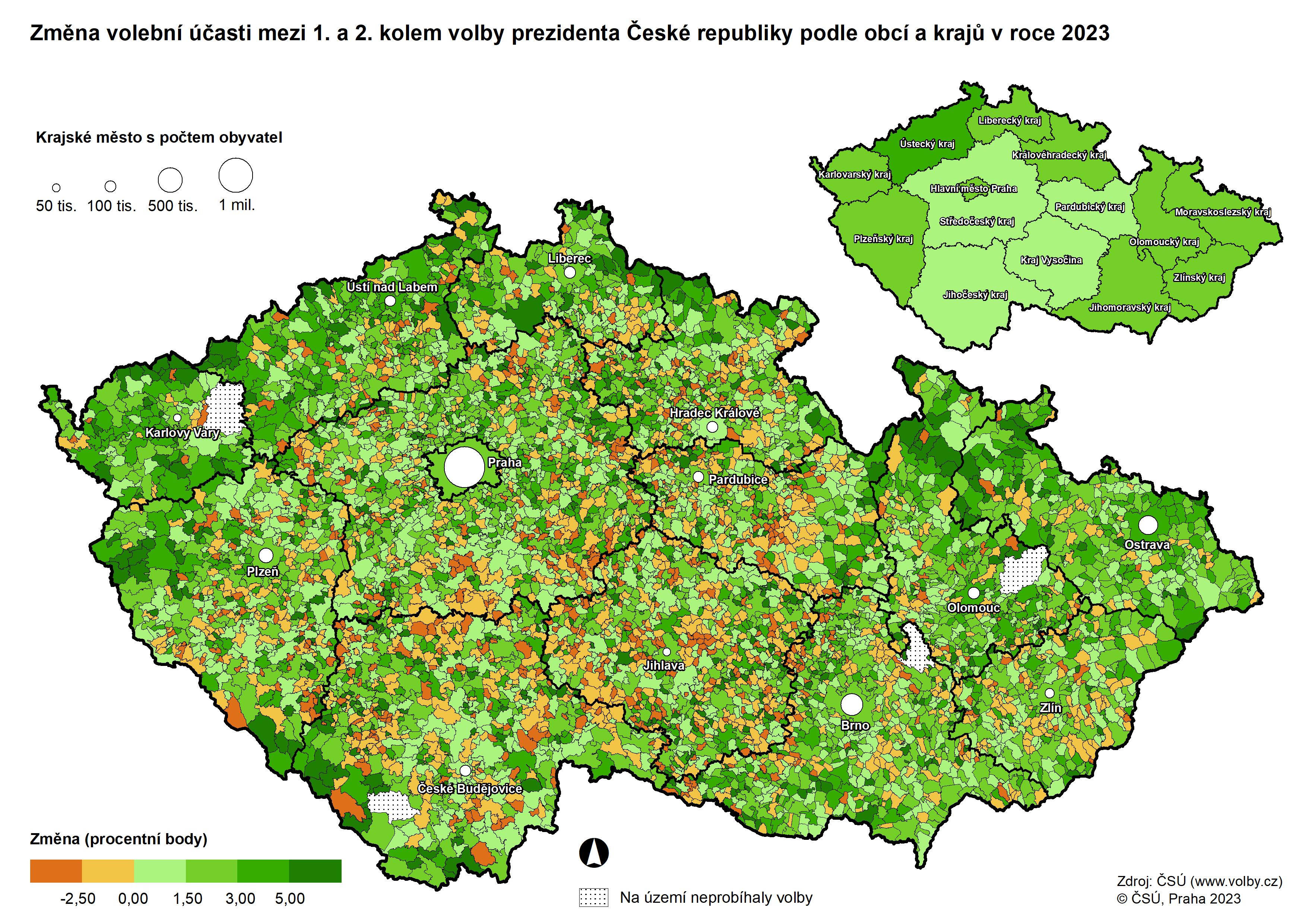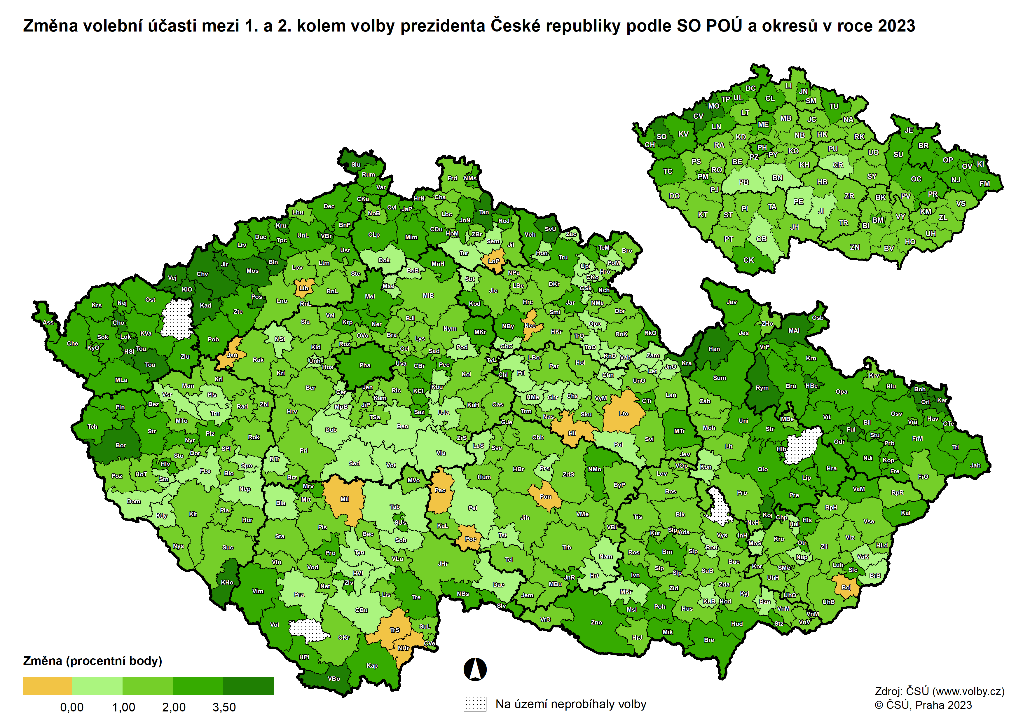 Změna podílu hlasů pro kandidáta mezi 1. a 2. kolem