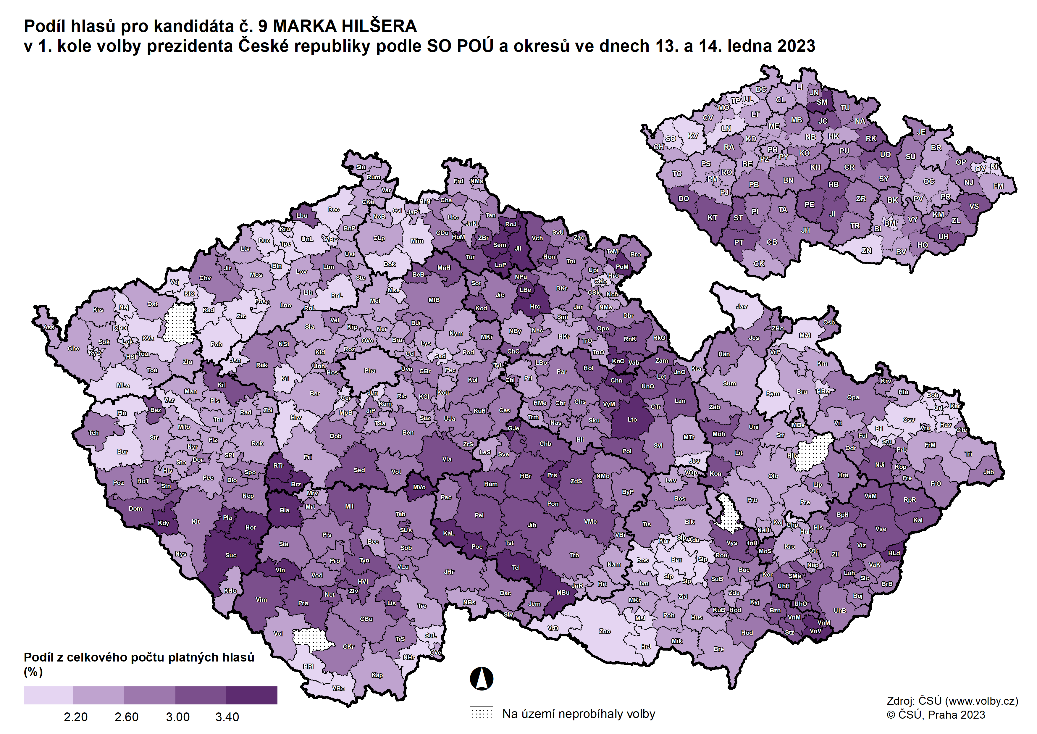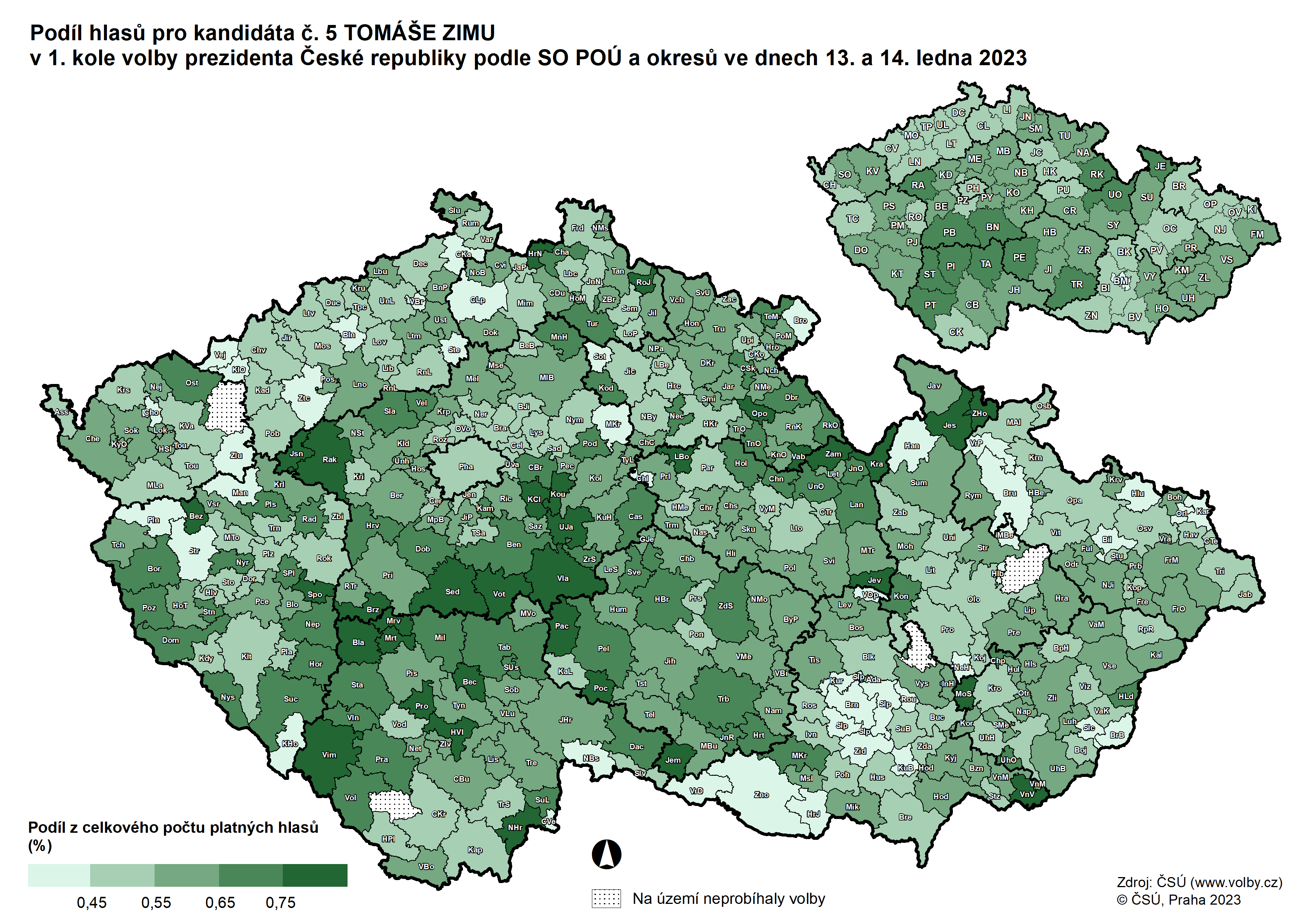 Podíl platných hlasů v 1. kole volby pro kandidáta